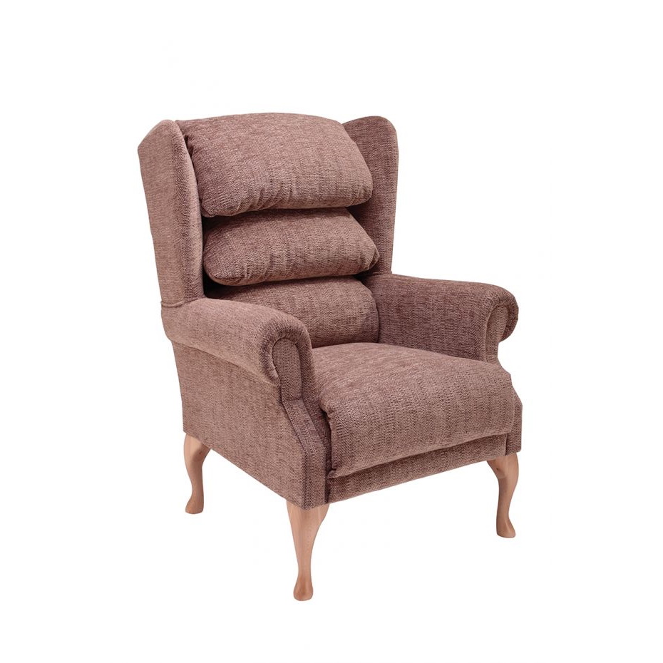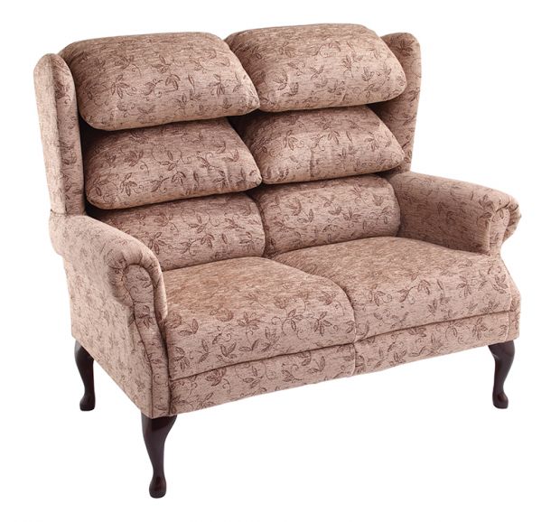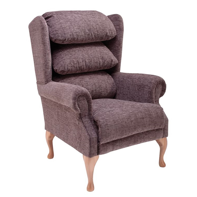 The Cannington Cosi Chair is a traditional range with elegant scroll arms and wings. With a zipped Waterfall Back design it offers adjustability in the neck, back and lumbar regions. The Cannington is made of birch wood and is available with mahogany or teak wooden Queen Anne style legs.