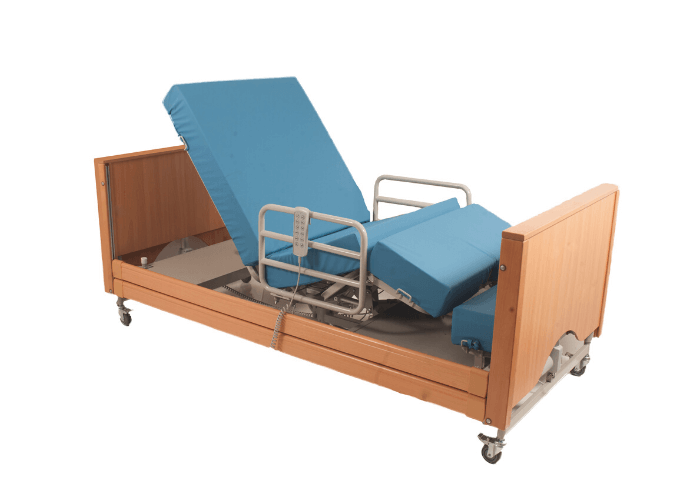The Revolve Rotating Chair Bed has been specially designed to help restore mobility and independence to people who are struggling so they can transfer to and from bed without assistance. Simple to use and with a touch of a button, the Revolve bed seamlessly and safely rotates the user unassisted from a lying to a seated position. Easy and safe to operate, the Revolve bed will automatically adjust to the correct height before rotating and comes as standard with handrails and lift-and-lock safety sides. The 5-section profiling action includes high-low adjustment and enables multiple positioning for supreme comfort.